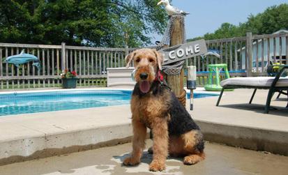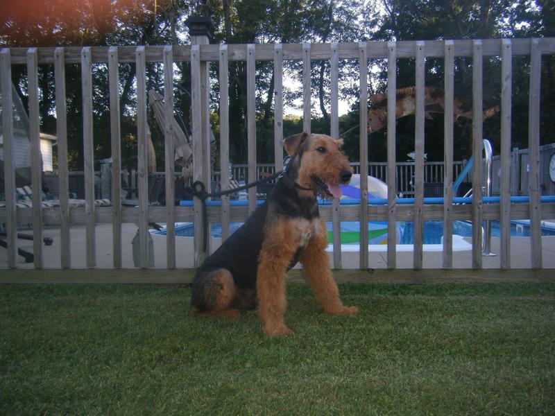 This is Duke. He is one of our AKC Oorang Airedale studs. Picture above was taken at 6 months of age and 70 lbs. Photos below were taken at 1 & 1/2 years old and over 100 lbs.. He is a gentle, laid back, lovable teddy bear.